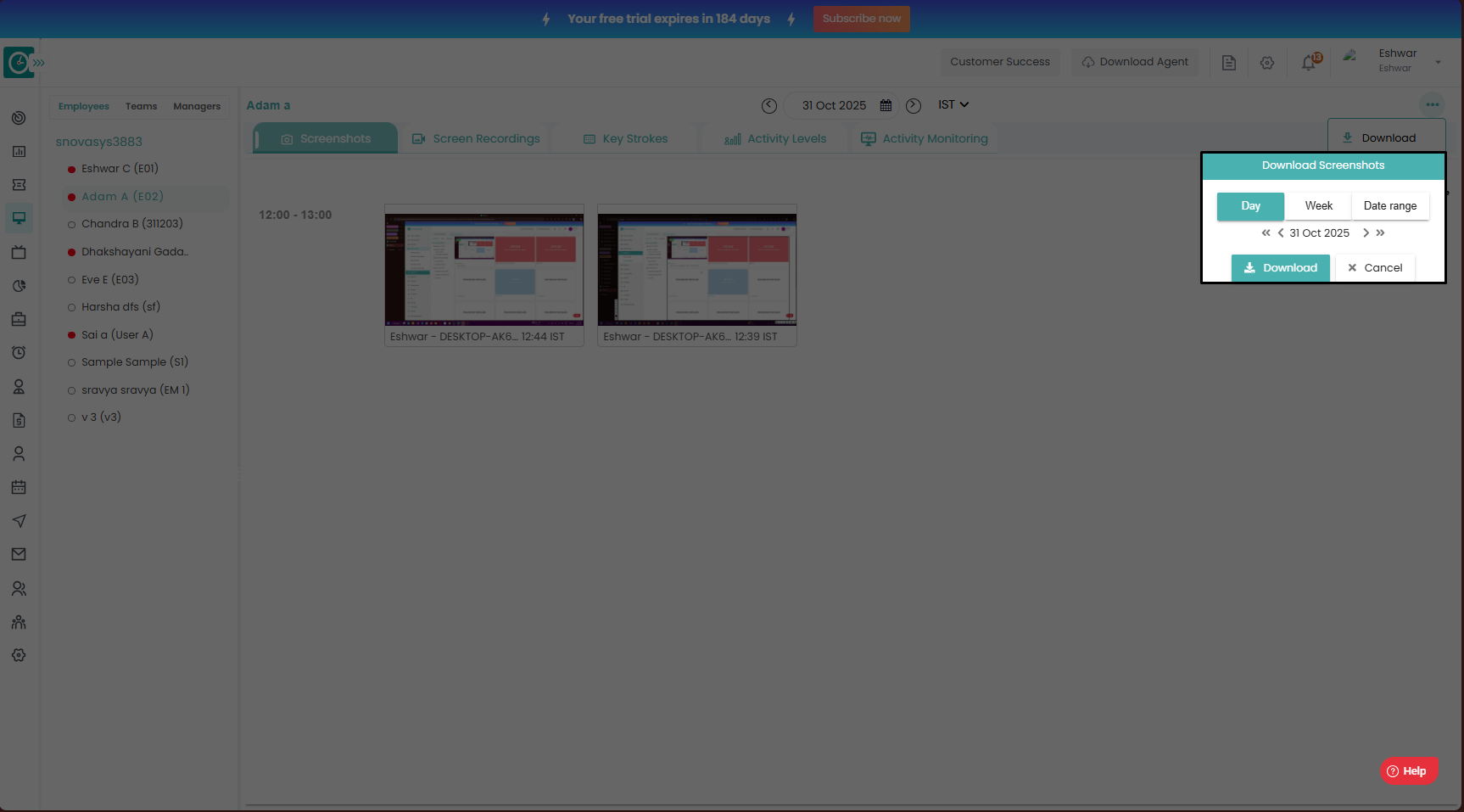 How to view and download Screenshots of a user in Monitoring?