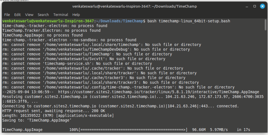 Here you can see two files- License and timechamp-linux_64bit-setup.bash.