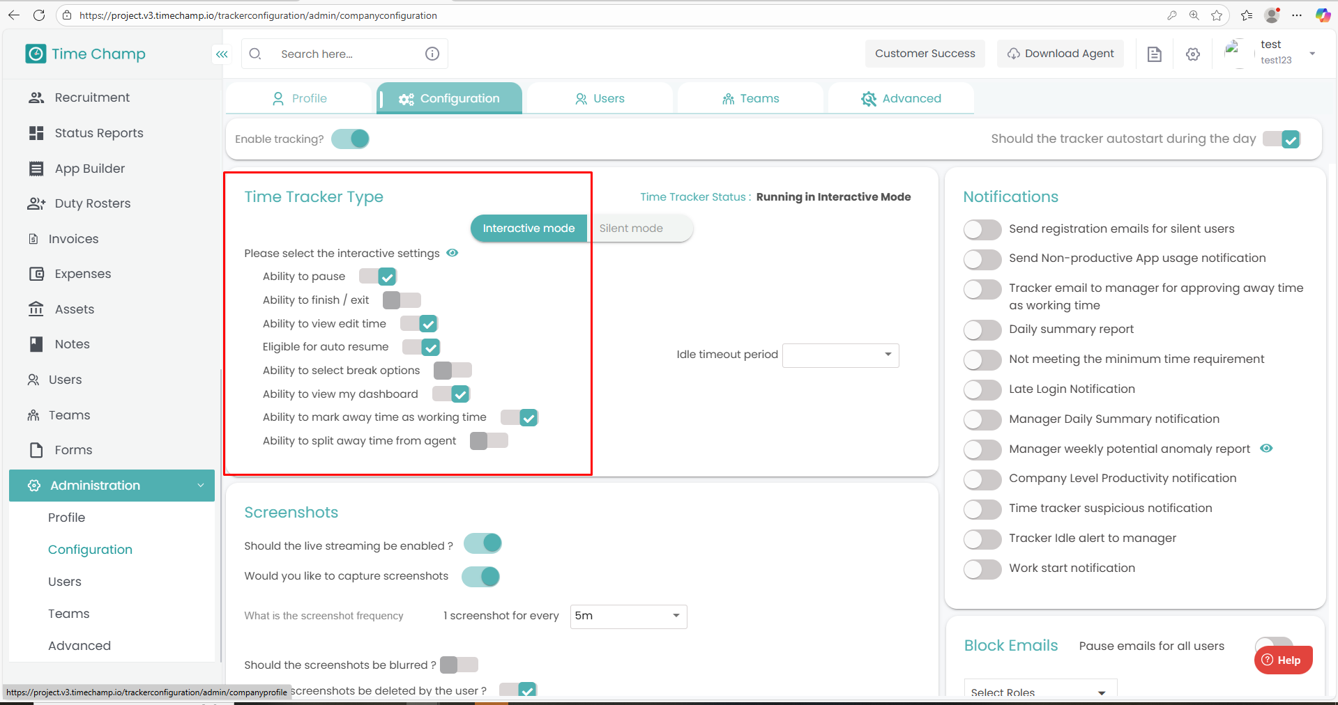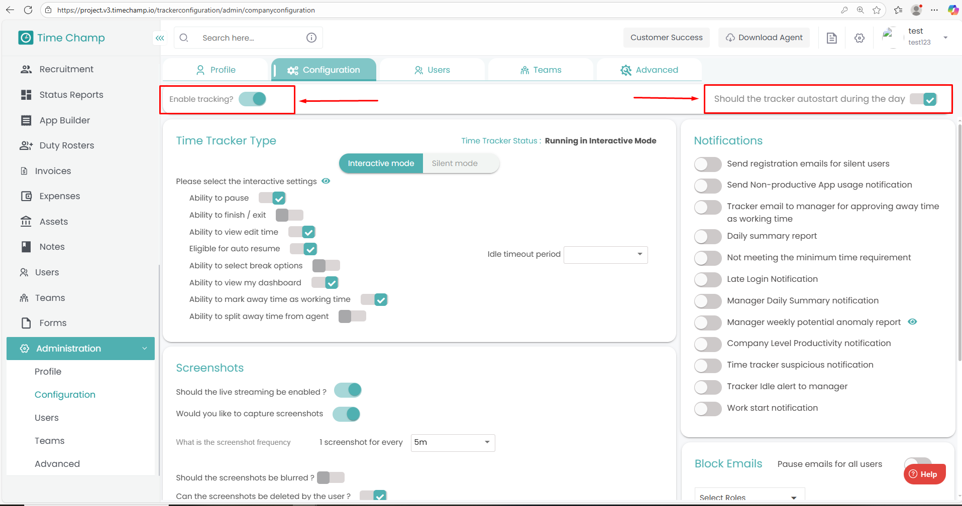 Follow the steps below to access and manage team-level configurations under the Administration module: Step 1: Log in to your Time Champ account. From the left-hand menu, click on the Administration module. Step 2: Under the Administration module, ...