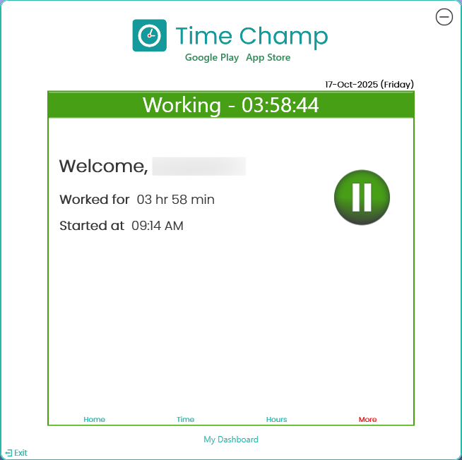 Employees can access the “My Dashboard” option directly within the tracker interface. By clicking this option, they are navigated to their personal dashboard, where they can review their attendance.