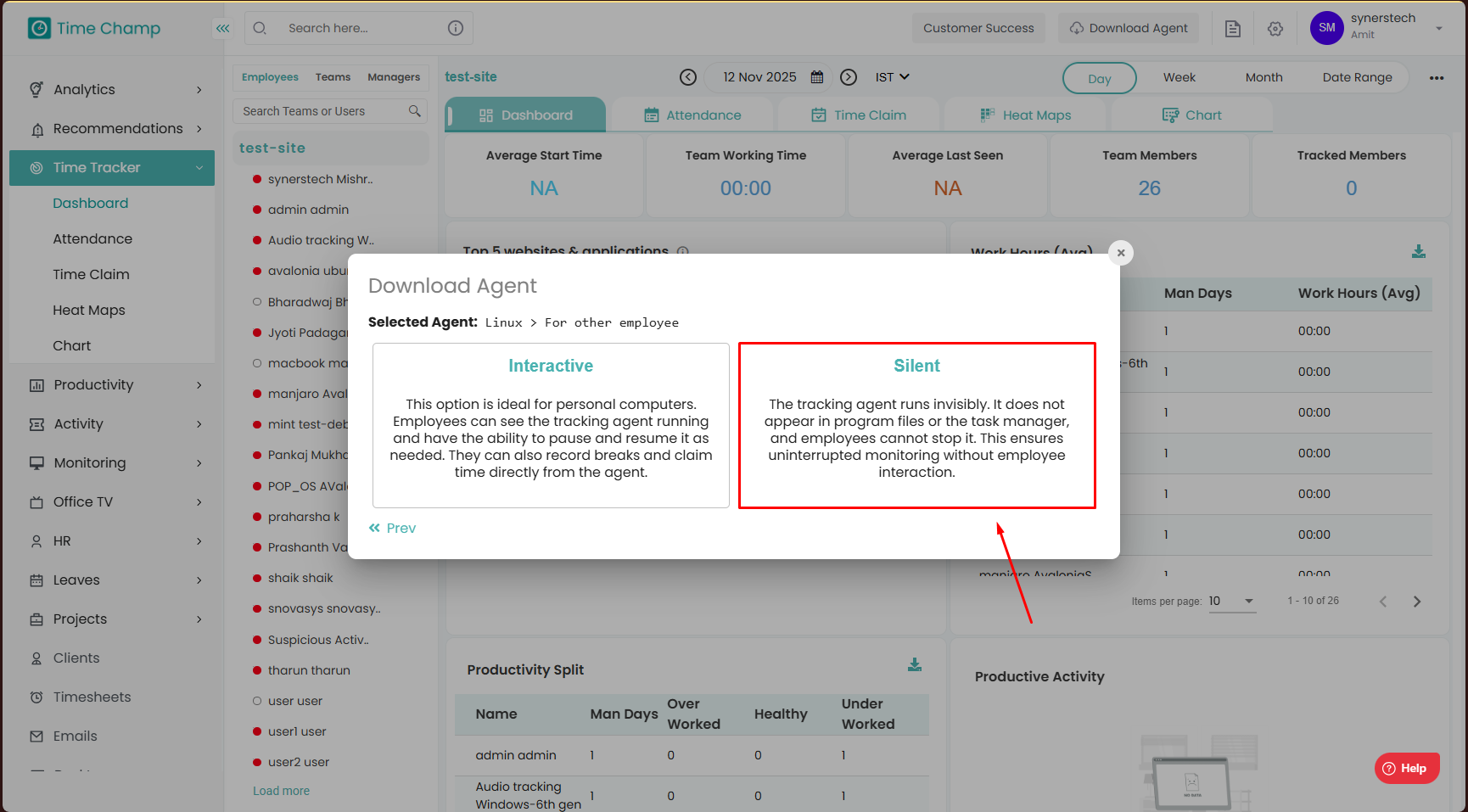In the silent version, employees cannot see the tracker running on their systems directly.