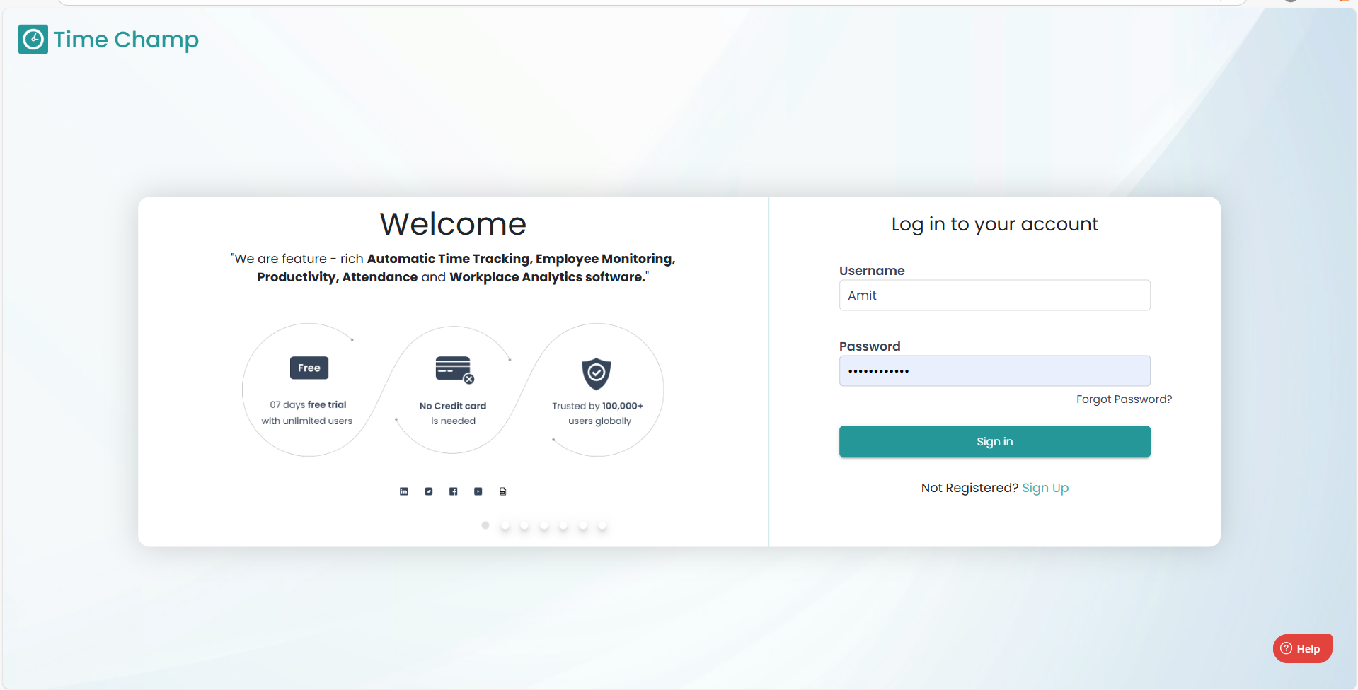 Step 1: Log in to your Time Champ account using your credentials.