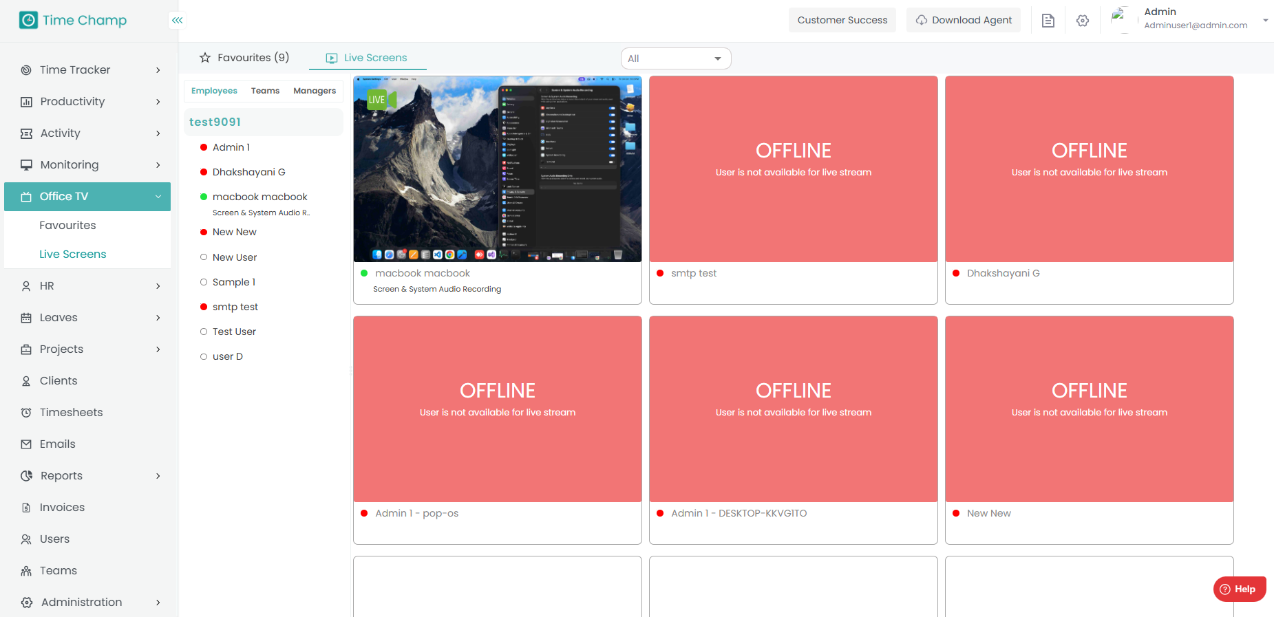 Step 4: You can view all employee screens in the Live Screen tab.