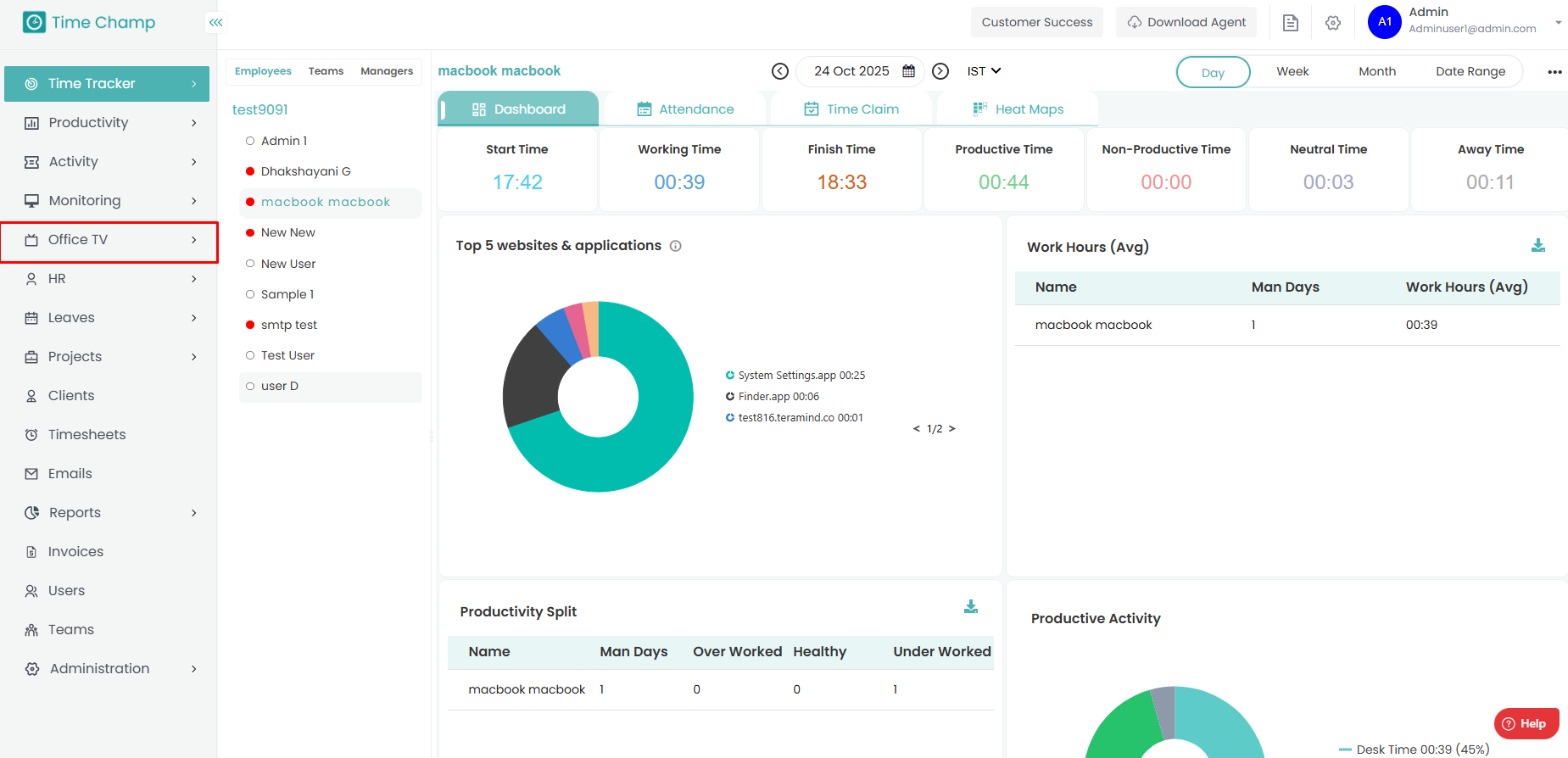 Step 2: To view live screens, Navigate to Office TV module.