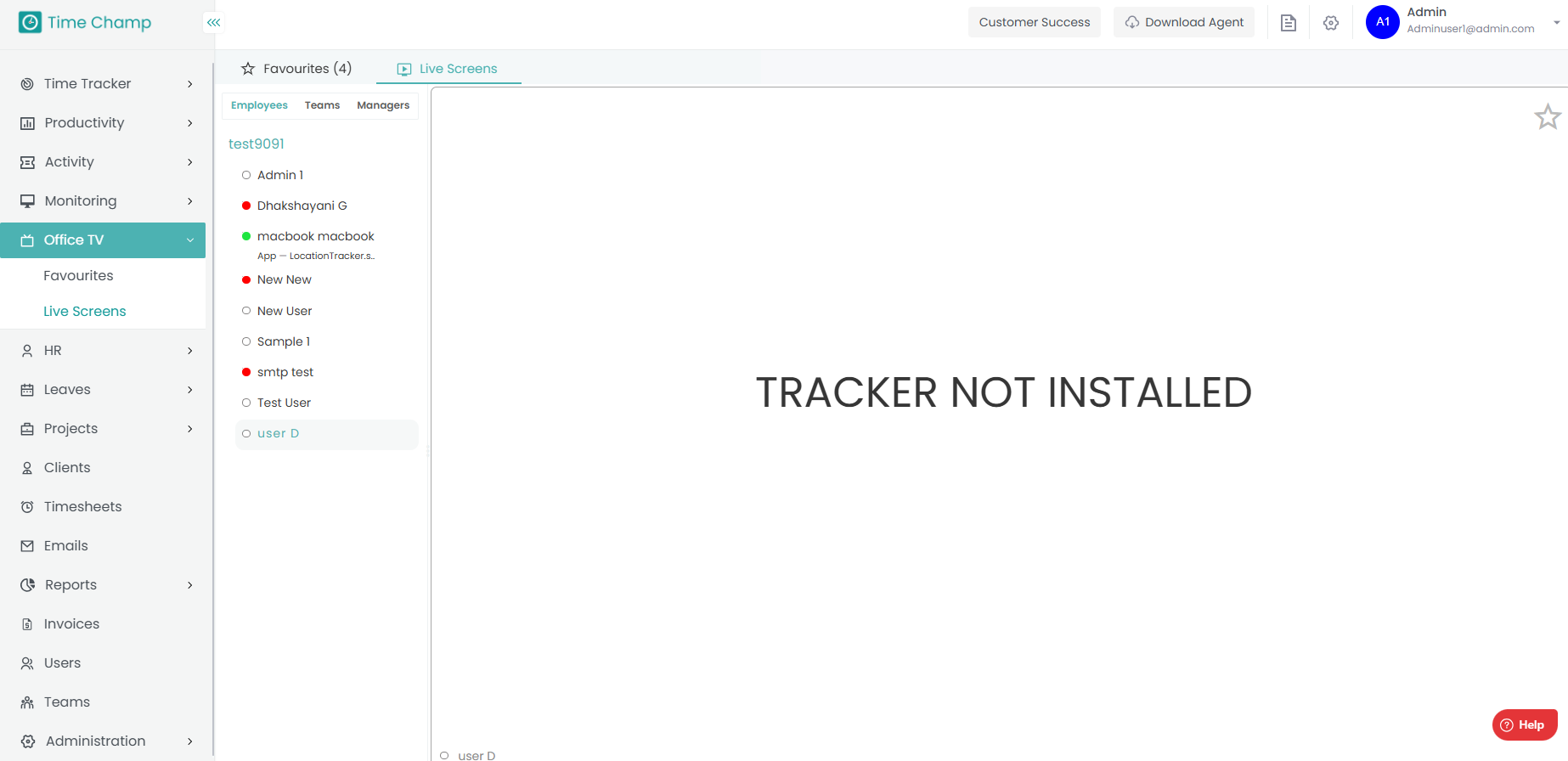 If the tracker is not installed on the user’s system, you will see the “Tracker Not Installed” status on the live screen.