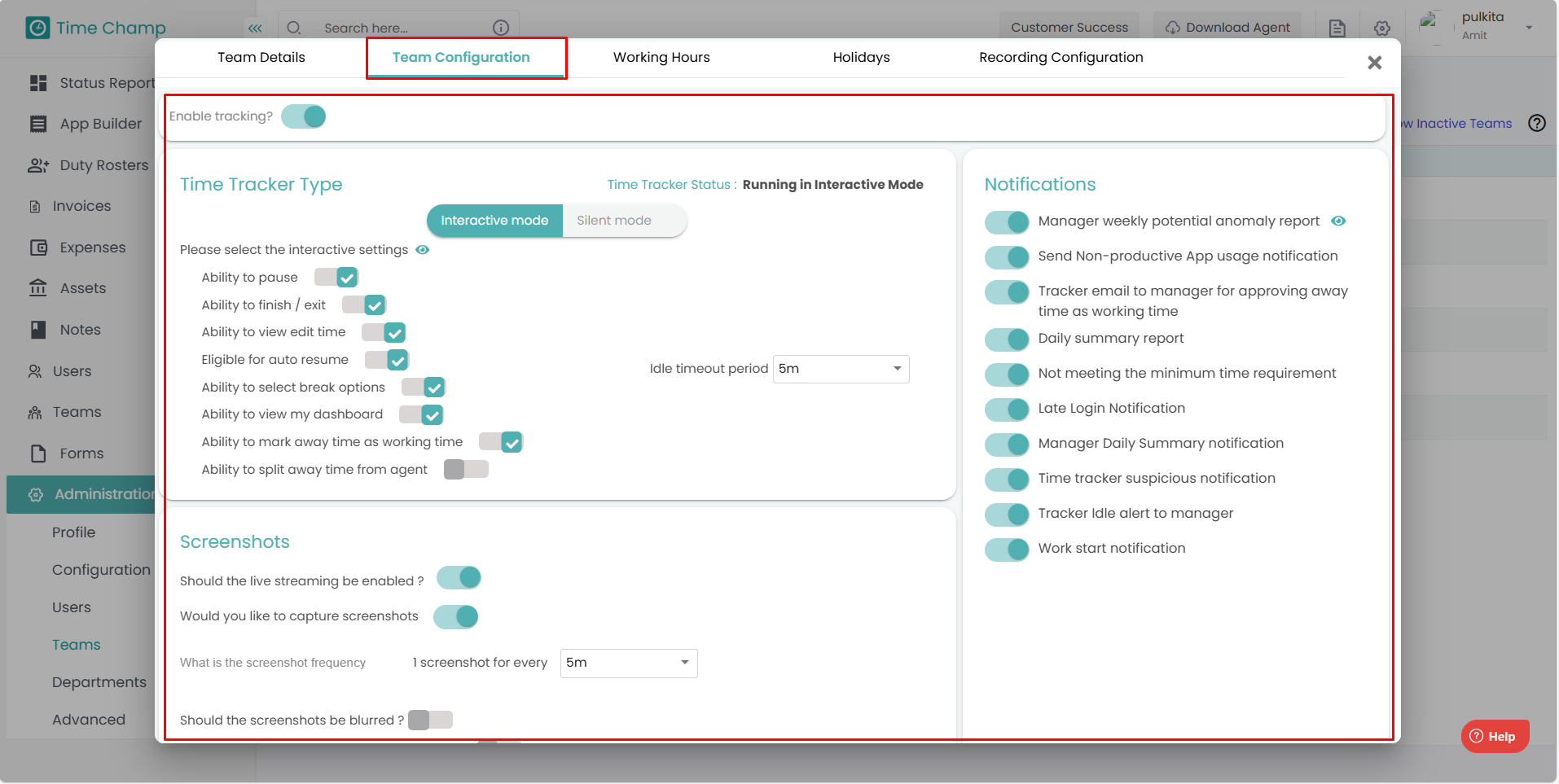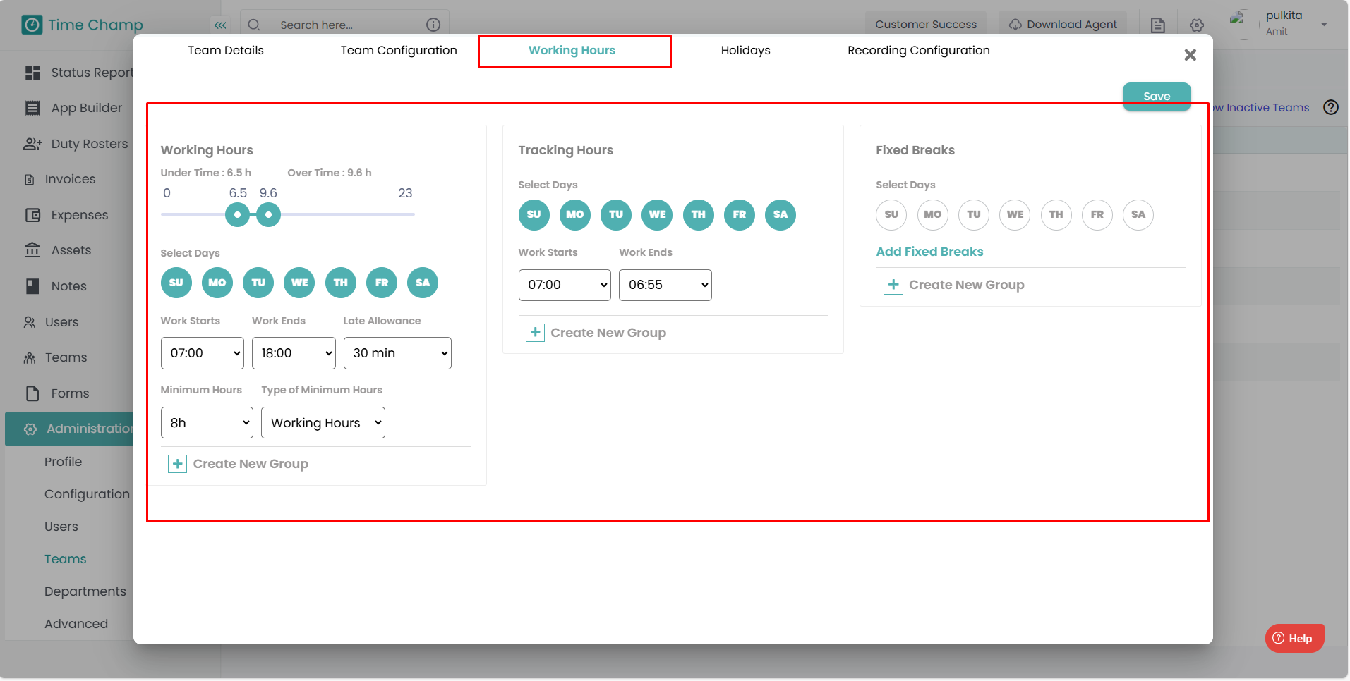 Here, you can configure Team level Working Hours as per your organization’s requirements.