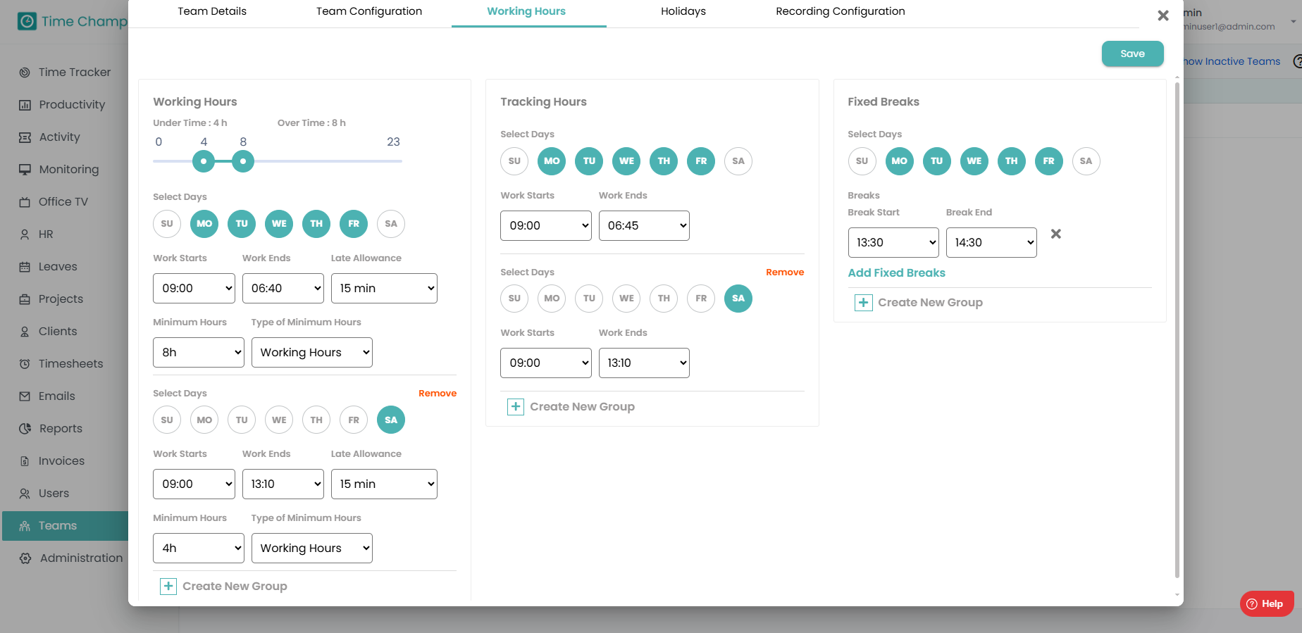 To configure working hours, Click here.