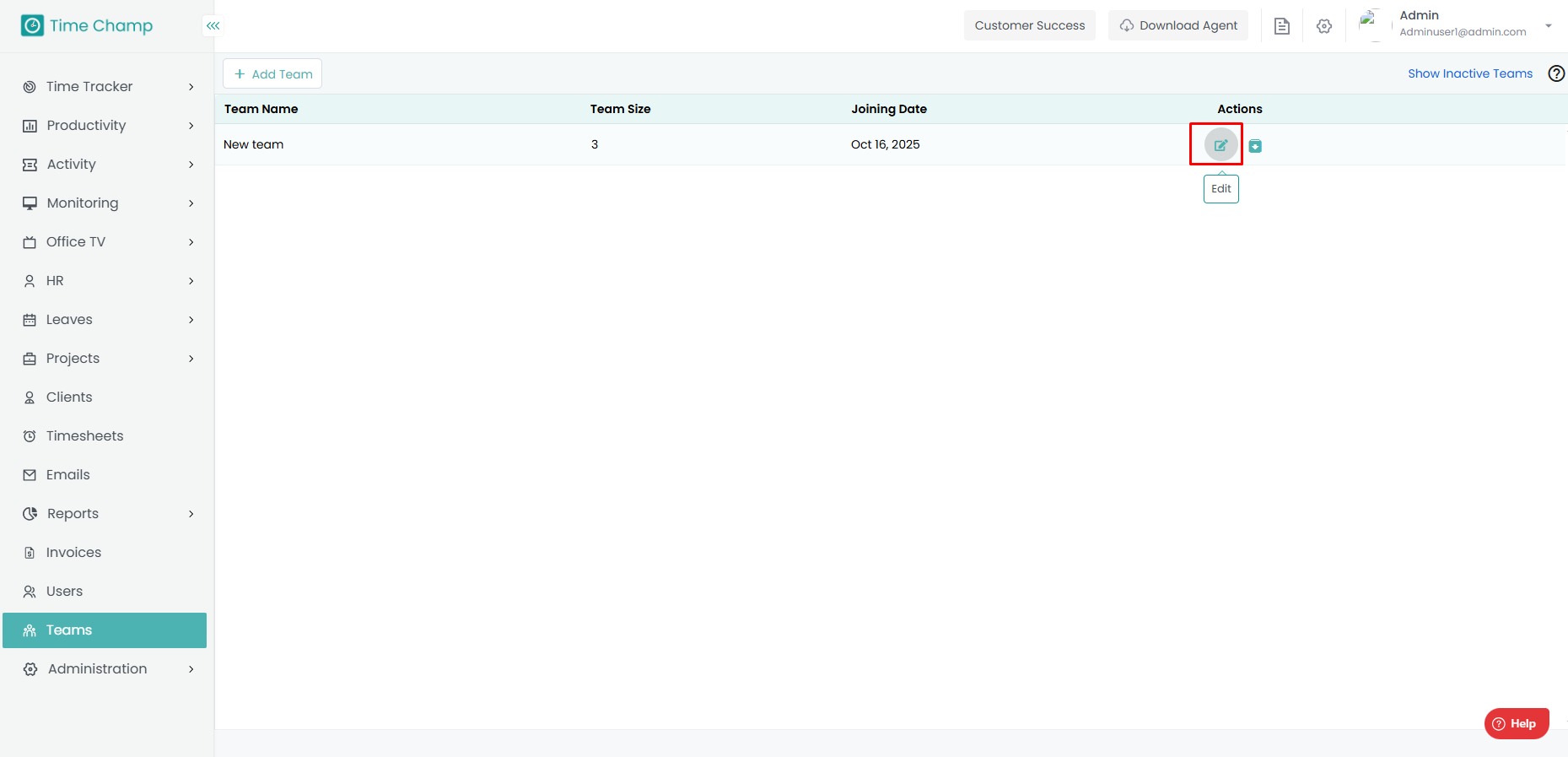 Step 3: Click on the edit option beside the team name.