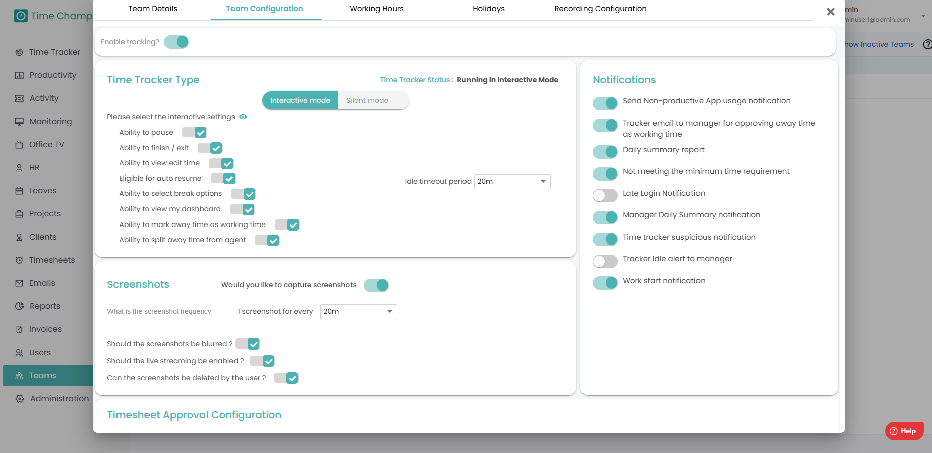 Step 1: Navigate to Administration module. Step 2: Navigate to Configurations. Here you can select whether you want to enable tracking or not and we can also enable or disable the option to auto start the tracker every day or not. Interactive ...