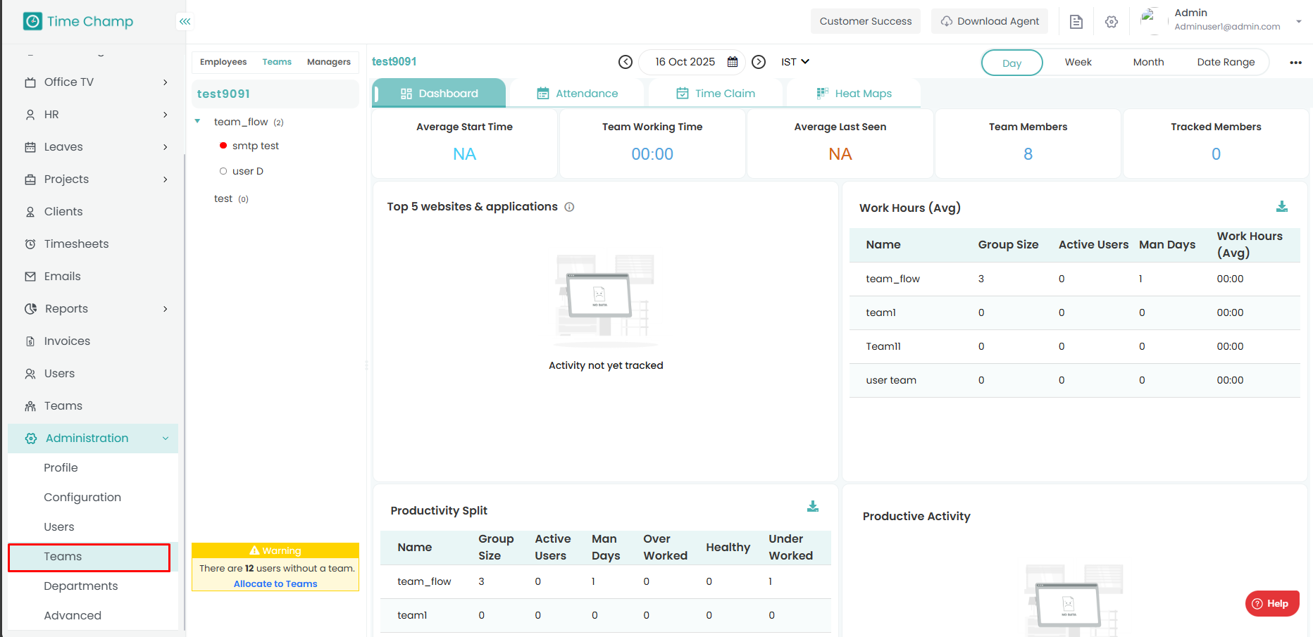 Team level Productivity configuration