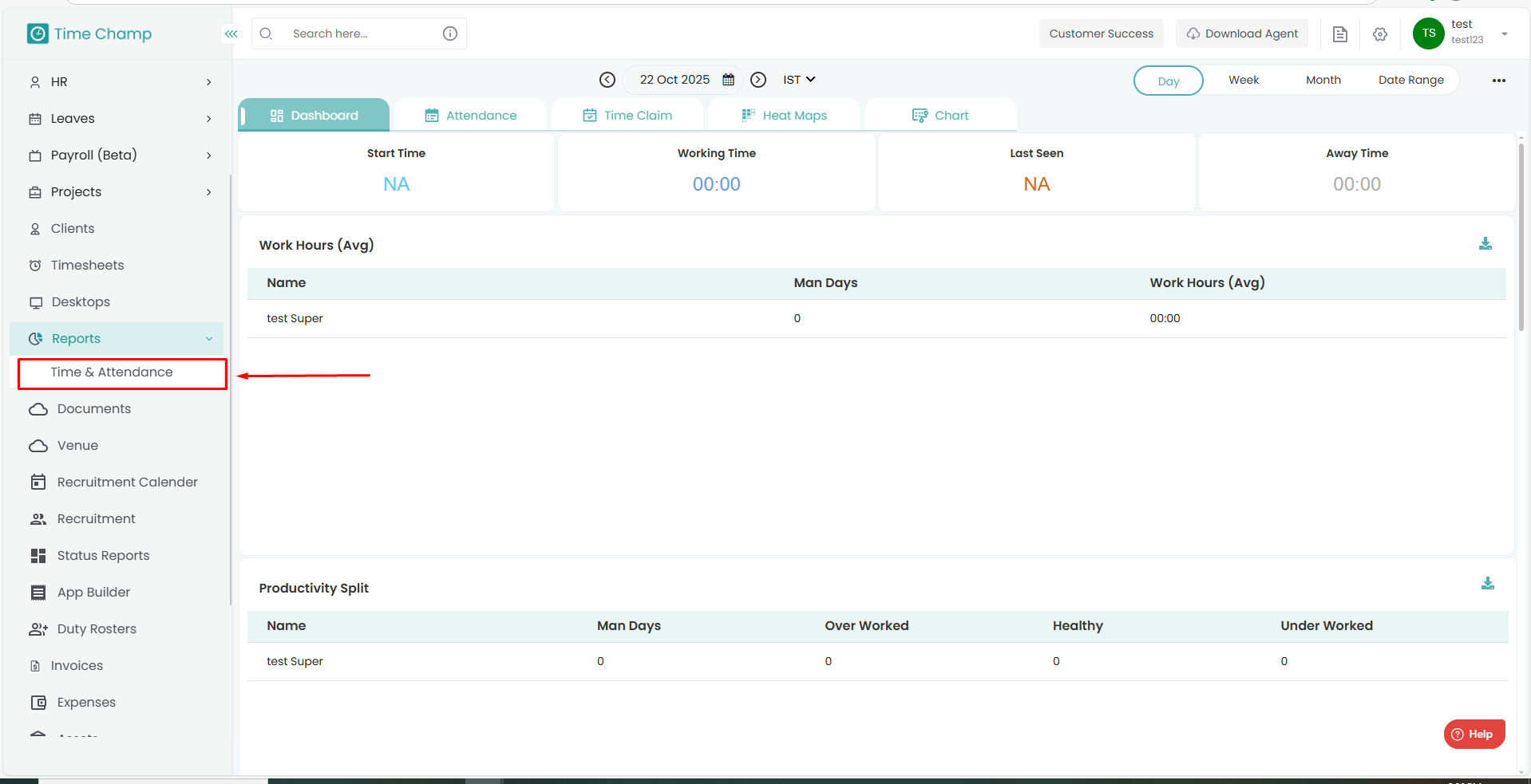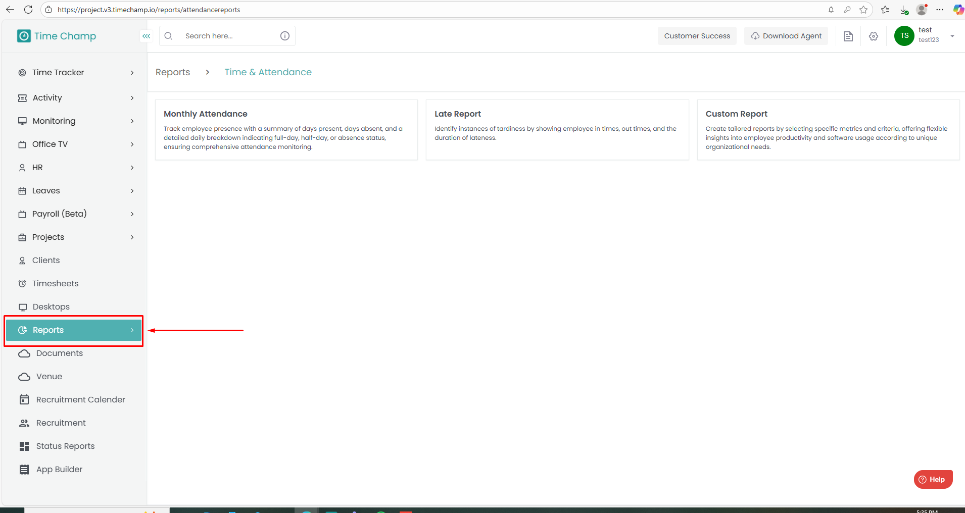 Under Reports, click on Time & Attendance.