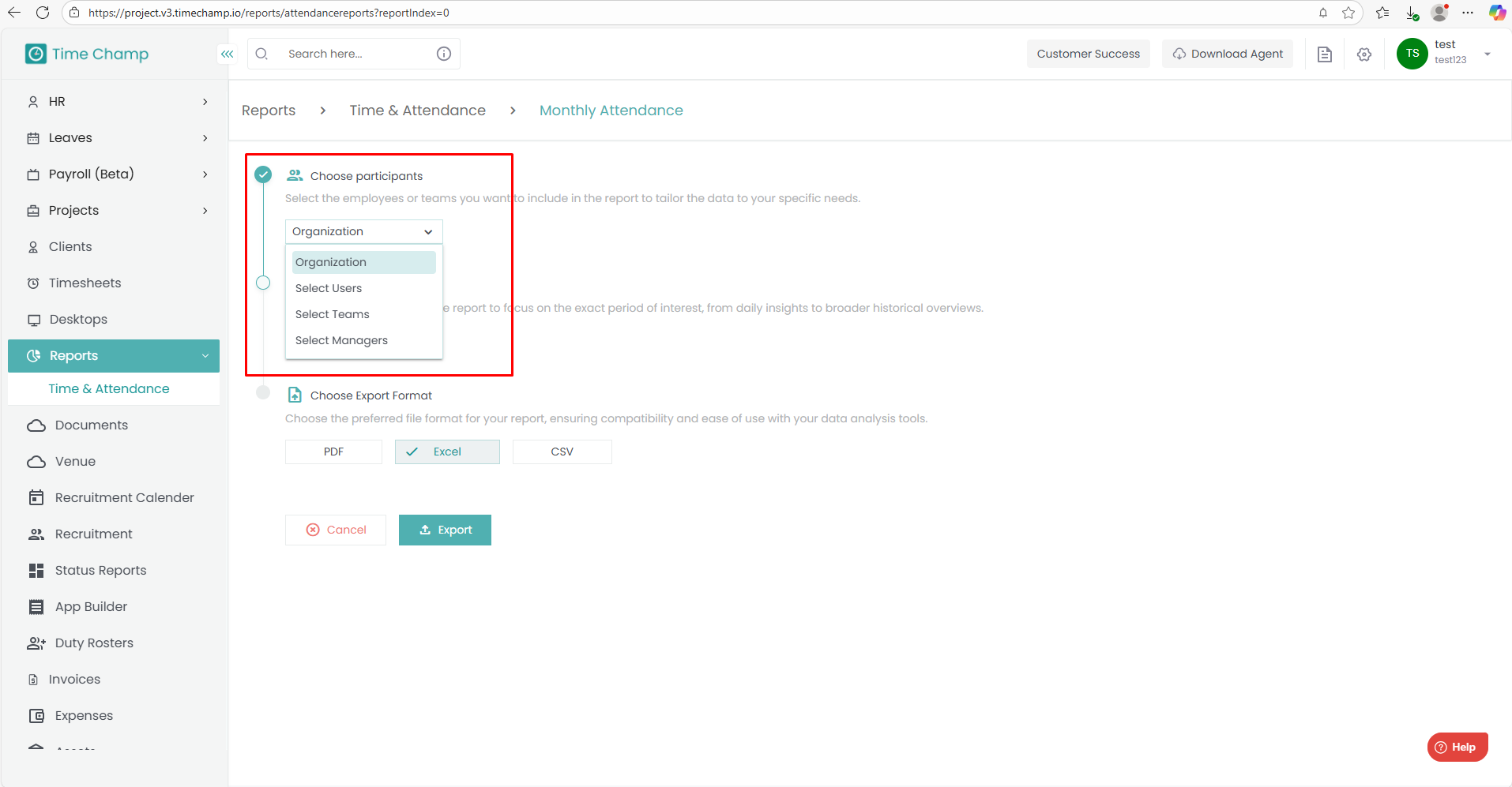 Log in to your Time Champ account.