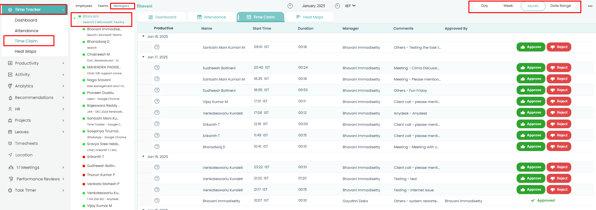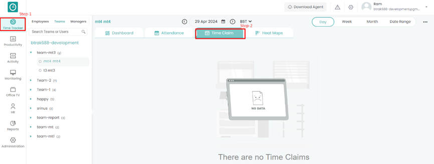 Follow the steps below to navigate and understand the Time Claim section in the Time Tracker module of Time Champ: