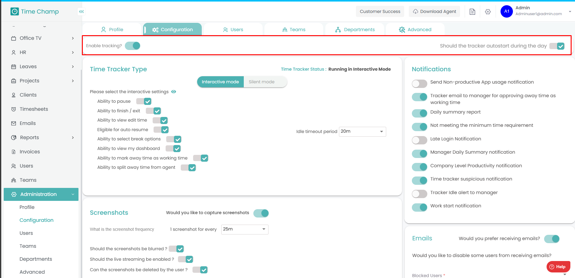 Step 1: Navigate to Administration module. Step 2: Navigate to Teams. Step 3: Click on the edit option beside the team name. Step 4: Navigate to user configuration. To configure interactive tracker settings, Click here To configure screenshots, Click ...