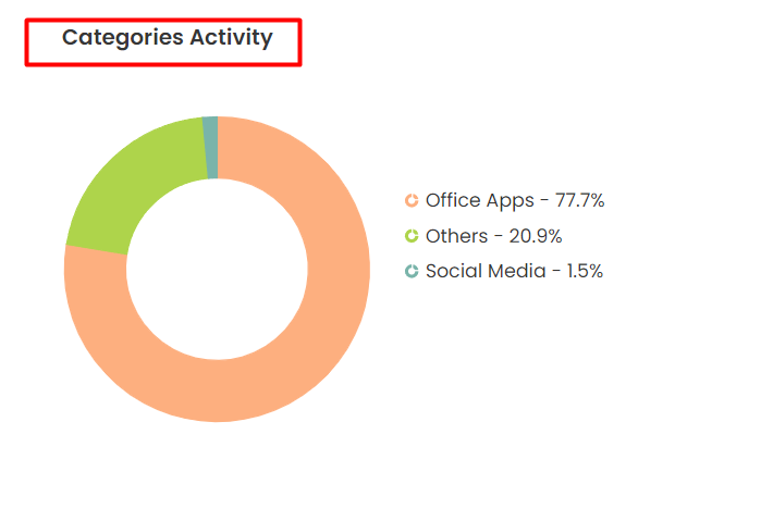 Shows the distribution of time spent by users on different application categories, helping to identify how work hours are utilized across various tools and platforms.