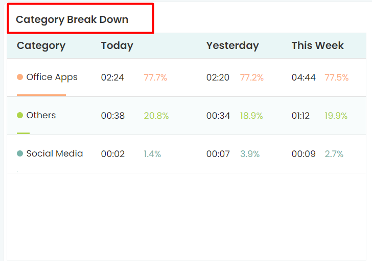 You can also view the Category Breakdown and Category Activity to understand how users spend their time across various applications and websites.