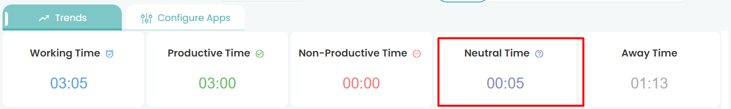 Represents the duration spent on neutral applications or tasks that are neither productive nor nonproductive.