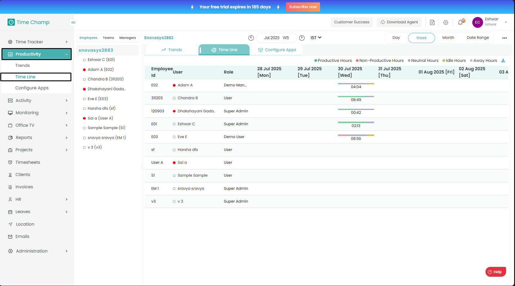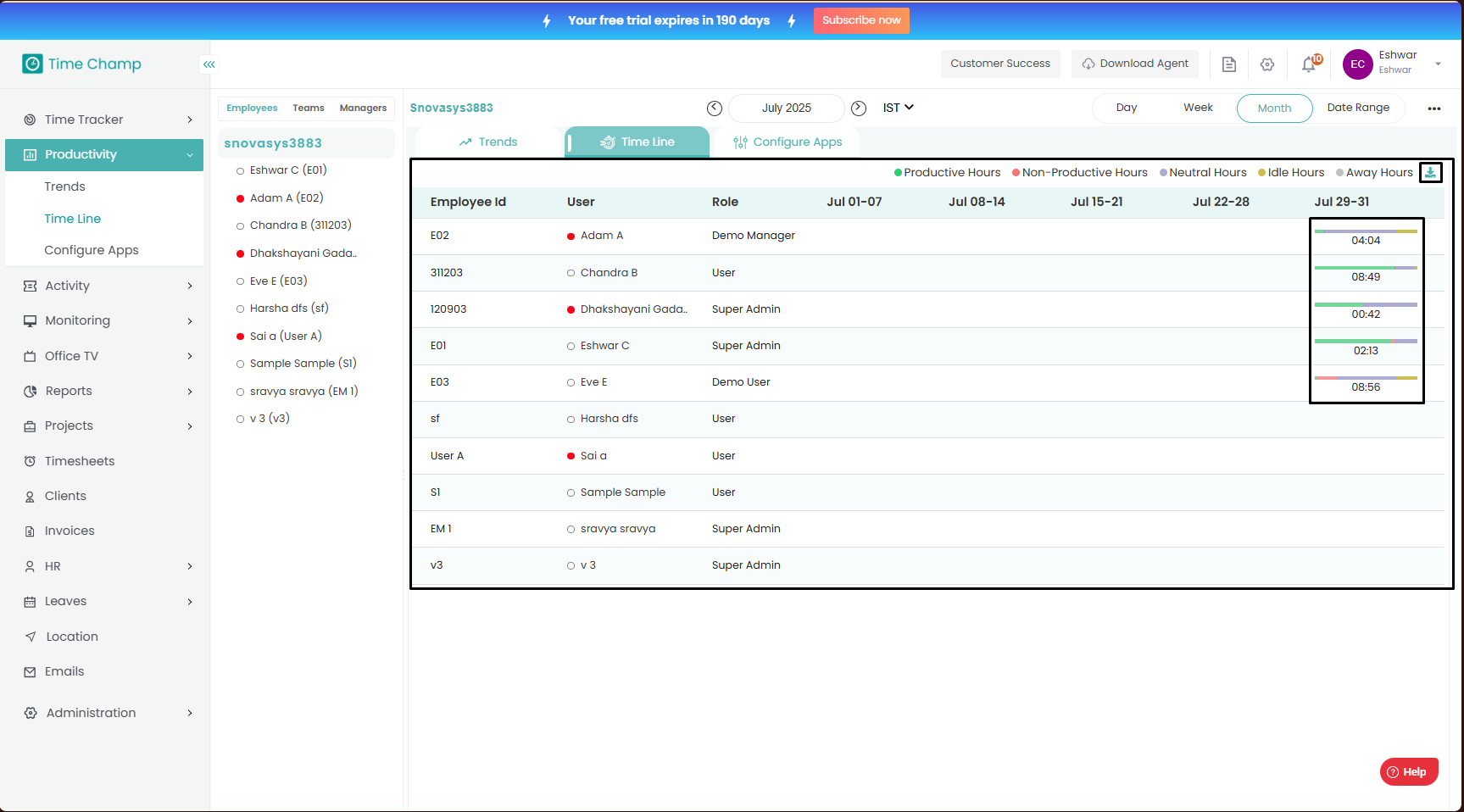 Understanding Trends Step 1: Navigation To Trends Click on the Productivity Module and select Trends Section as shown in the below image. Step 2: The highlighted area in the below image shows the metrics of productivity time which are as follows - ...