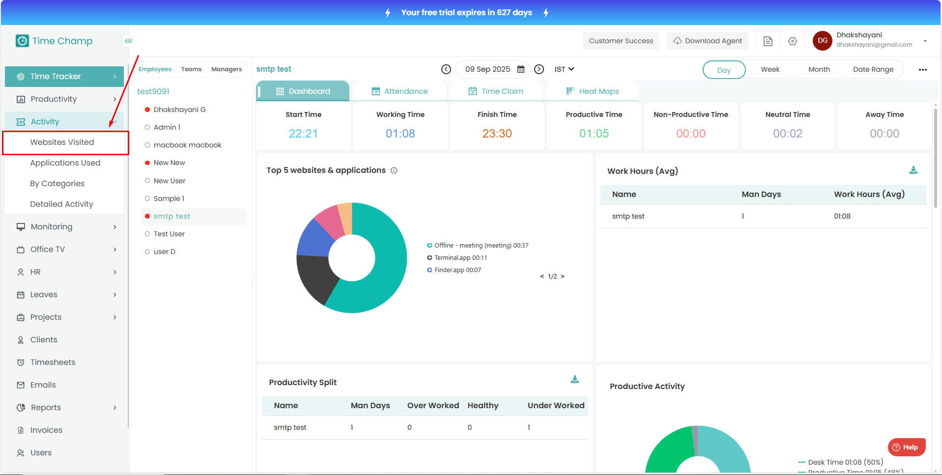Follow the steps below to navigate and view the list of applications used by users under the Activity module: Step 1: Log in to your Time Champ account. From the left-hand menu, click on the Activity module. Step 2: Click on Applications Used. Step ...